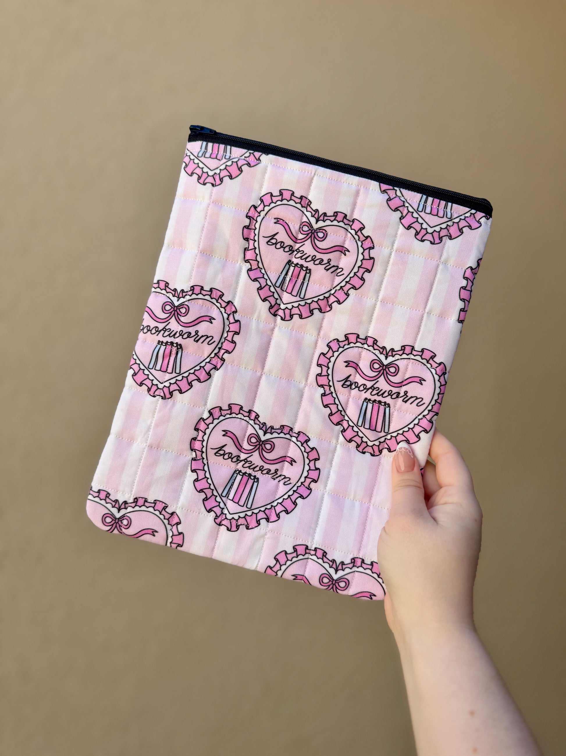 Introducing the cotton quilted book sleeve! It's a stylish and practical way to protect your device or favorite book! Book sleeves are made from trendy fabric, close with a zipper or snap, and are quilted for extra padding. Each book sleeve is unique and is the only one of its kind!